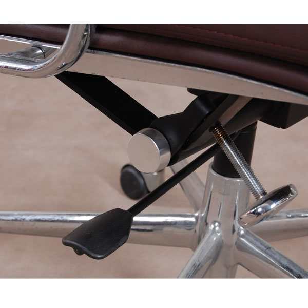 - 產(chǎn)品簡介:電鍍鋁合金扶手和腳,表面光亮,拋光達(dá)到鏡面效果,弧度順暢。光滑不留痕跡。五星帶輪子腳,帶升降傾仰功能,椅子可以360度轉(zhuǎn)動(dòng)。座墊與靠背皮墊平坦,線走得直,皮裁得順,不起皺,線條流暢.皮墊內(nèi)采用的高密度海綿,更具有彈性。
